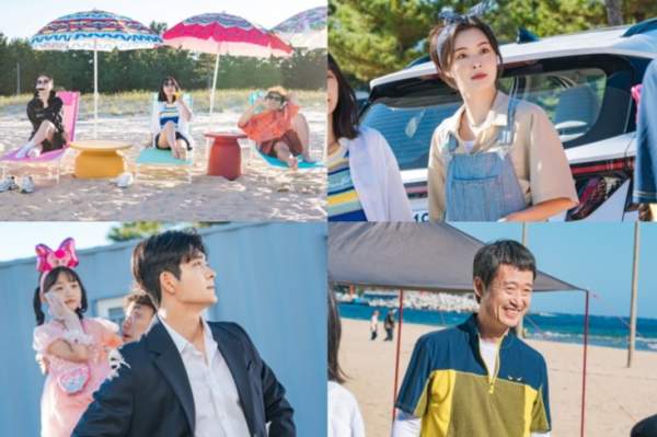 감자 패밀리의 야유회 현장에서 촬영된 비하인드 스틸과 미공개 컷은 그동안 볼 수 없었던 배우들의 자연스러운 모습을 생생하게 담아냈습니다. 촬영이 잠시 쉬는 동안 바닷가에서 찍은 기념사진에서는, 이선빈과 강태오가 다정한 꽃받침 포즈를 취하며 서로에 대한 설렘을 나누는 장면이 포착되었습니다.