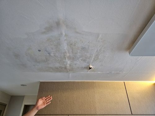 물 떨어지는 위치와 범위를 전후좌우 다양한 각도에서 촬영합니다. 벽지·천장 상태, 물 얼룩 자국, 물웅덩이까지 남기면, 나중에 보상 범위를 입증하는 데 유리합니다.
