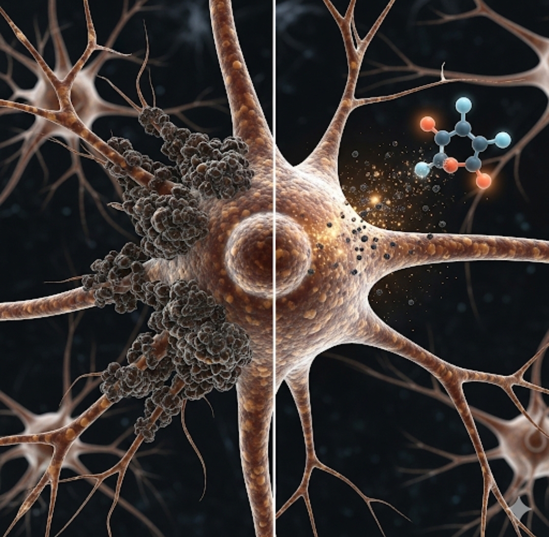 우리 뇌세포를 하나의 작은 공장이라고 비유해 봅시다. GBA1 유전자는 이 공장의 ‘폐기물 처리 시스템’을 담당하는 아주 중요한 관리자입니다. 그런데 이 관리자(GBA1 유전자)에게 문제가 생기면, 공장 안에는 ‘알파-시누클레인’이라는 독성 폐기물이 마구 쌓이기 시작합니다. 그리고 이 쓰레기 더미가 결국 공장(뇌세포)을 망가뜨리고 죽게 만드는 것이죠.