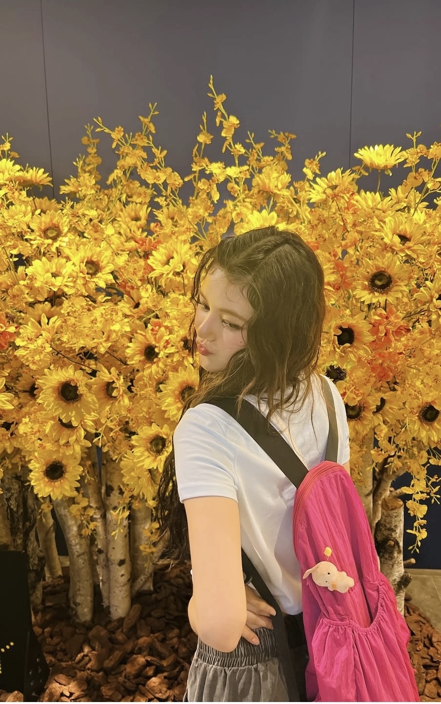 뉴진스 다니엘 사복 패션 대해부! 힙한 꾸안꾸, 핫핑크 백팩으로 완성한 인간 해바라기 룩!