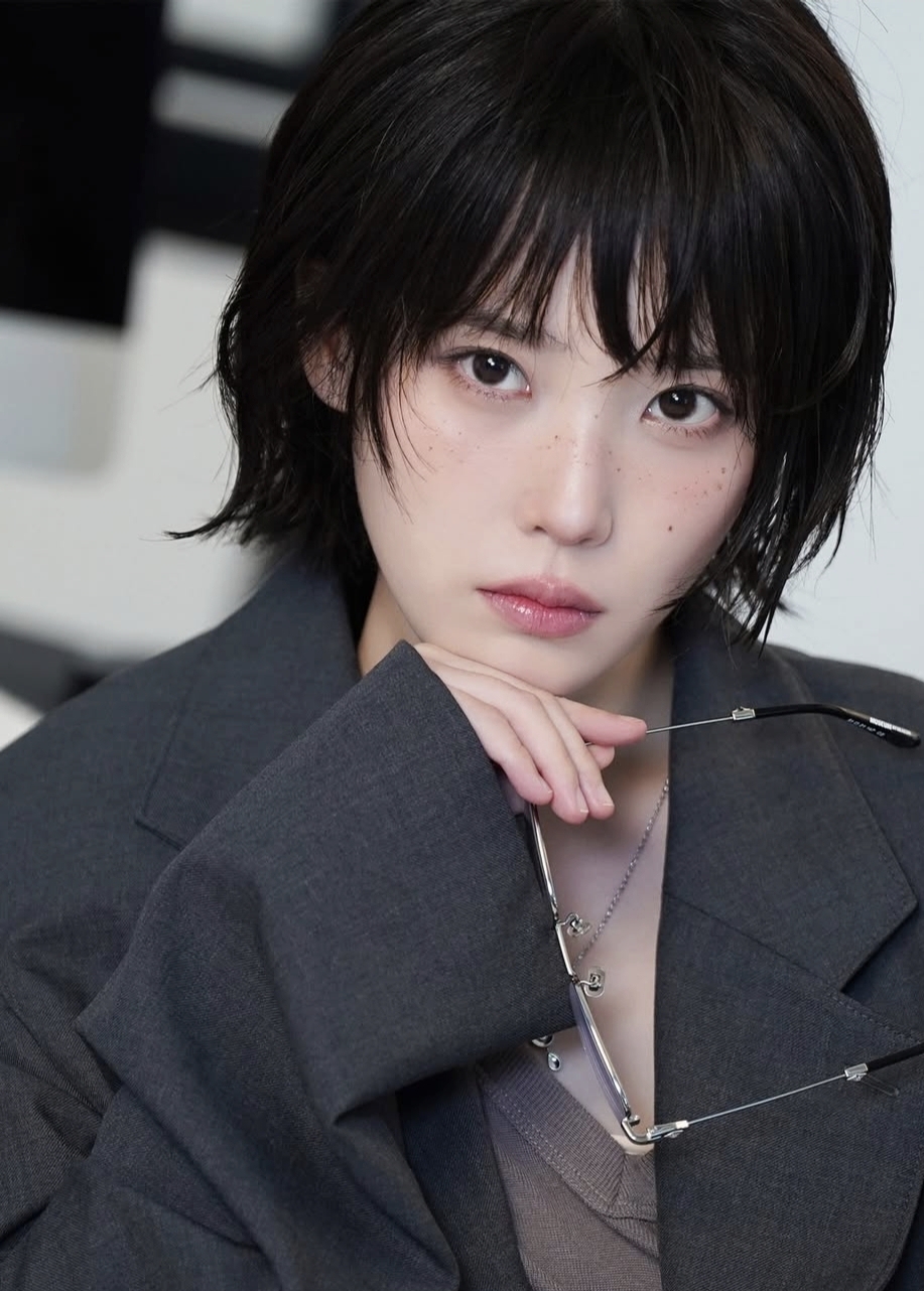 하지만 오늘 제가 여러분께 가장 보여드리고 싶었던 반전 매력은 바로 숏컷 아이유입니다. 여러분 이 사진 보셨나요. 저는 처음에 보고 헉 소리가 날 정도로 놀랐어요. 긴 머리 아이유도 예쁘지만 이렇게 보이시한 숏컷을 한 모습은 정말 오랜만에 보는 것 같아서요. 회색 오버핏 슈트를 입고 한 손에는 노트북을, 한 손에는 안경을 든 모습이 마치 성공한 젊은 CEO 같기도 하고 베스트셀러 작가 같기도 해요.