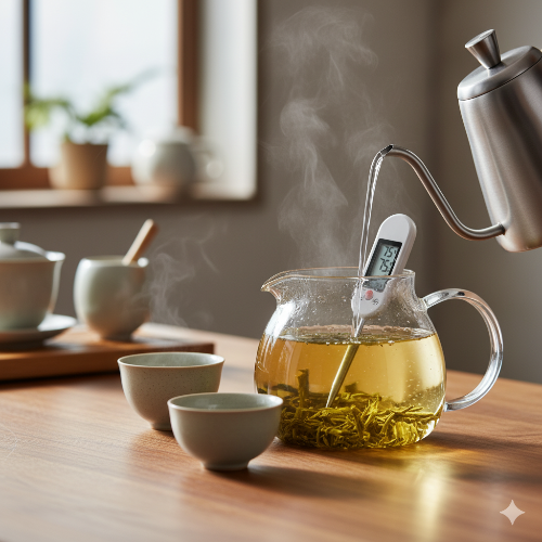 가장 큰 실수는 바로, 커피포트에서 팔팔 끓인 100도의 물을 찻잎에 바로 붓는 것입니다. 이것이 바로 녹차의 좋은 성분인 테아닌(감칠맛)은 파괴하고, 떫은맛을 내는 카테킨과 쓴맛을 내는 카페인만 과도하게 우려내는 최악의 습관입니다.