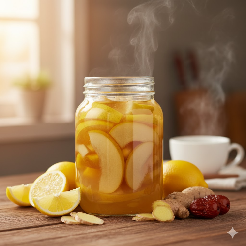 둘째는 '생강'이나 '대추'입니다. 몸을 따뜻하게 해주는 생강 몇 조각이나, 달큰한 맛을 더해주는 대추를 함께 넣으면, 모과의 향과 어우러져 훨씬 더 깊고 풍부한 맛의 모과청을 만들 수 있습니다. 특히, 으슬으슬 감기 기운이 있을 때 마시면 그 효과가 배가 되겠죠?