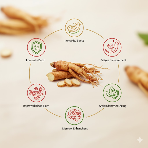 1. 면역력 증진: 우리 몸의 면역세포를 활성화시켜, 외부 바이러스나 세균에 대한 저항력을 높여줍니다. (환절기에 홍삼을 찾는 가장 큰 이유죠!)