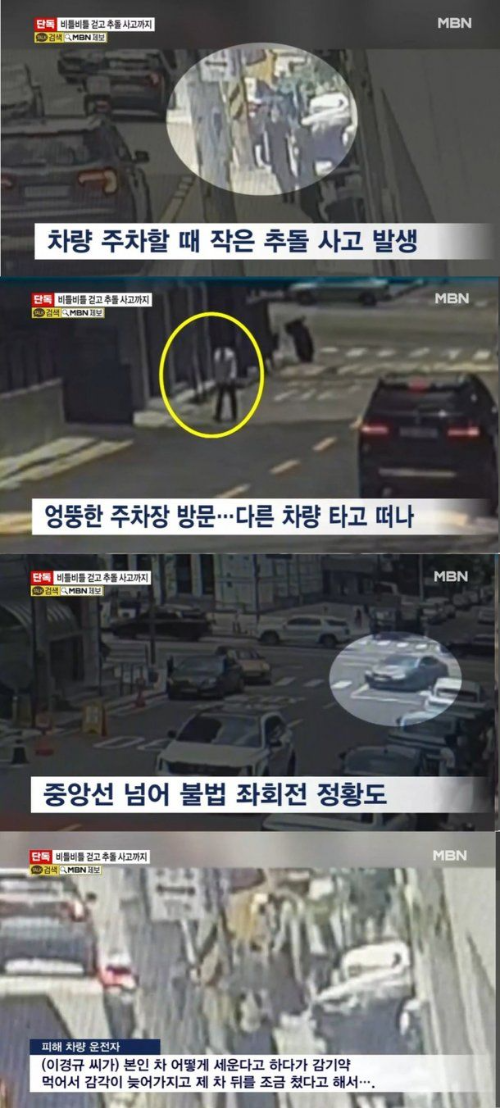 공개된 CCTV 영상에는 이경규가 차도로 비틀거리며 걸어 나오는 모습이 포착되었습니다. 그가 몰던 차량은 신호등 없는 도로 중앙선을 넘어 반대편 차선으로 진입했고, 이로 인해 마주 오던 차량이 급히 피하는 장면도 담겼습니다. 이어 50m 정도를 더 주행하다 버스 정류장을 들이받았고, 세차장 앞에서는 벽면과 강하게 충돌하며 차량 전면이 크게 파손되었습니다. 다행히 다친 사람은 없었으나, 사고 차량에서 내려 비틀거리는 모습이 포착되며 운전자가 정상 상태가 아니었음을 시사했습니다.