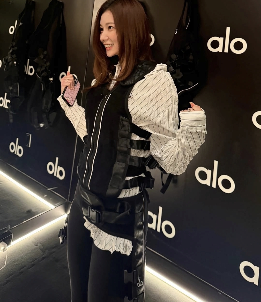 또 다른 사진에서는 운동 장비를 착용한 모습도 확인할 수 있습니다. 최근에는 퍼포먼스 향상을 위한 트레이닝이나 체형 관리에 관심이 높아지면서, 이런 스타일도 자연스럽게 트렌드가 되고 있습니다.