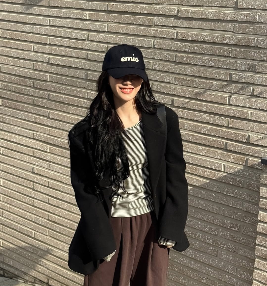 블랙 오버핏 재킷, 스트라이프 이너, 브라운 와이드 팬츠, 그리고 힙한 볼캡과 털 디테일의 액세서리까지! 이 공식만 기억하신다면, 여러분도 올겨울 편안함과 스타일을 모두 잡는 '패피'(패션 피플)로 거듭날 수 있을 거예요!
